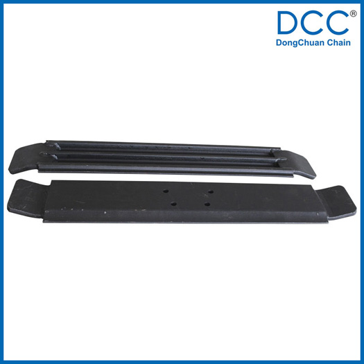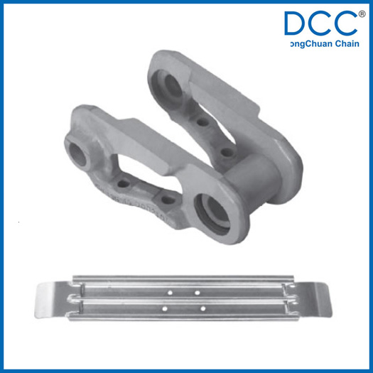 鍛造履帶鏈用于挖掘機(jī),推土機(jī)及其它一些工程裝備,驅(qū)動使用,鍛造履帶鏈的鏈板為鍛造而成,有專用的機(jī)床加工兩節(jié)距孔,確保鏈條的同步性,并采用專用的設(shè)備進(jìn)行裝配,兩面同時裝配,選用大過盈量的配合公差,提高鏈條整體的牢固度,并在套筒和銷軸表面涂抹專用的油脂,降低零件間的磨損。